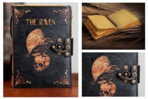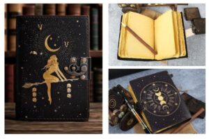 Productlink- https://leatherjournalcraft.com/product/leather-book-of-shadows-hocus-pocus-spell-grimoire-deckle-edge-paper/