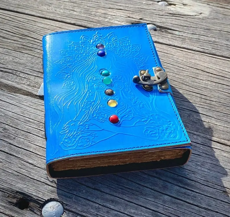 The 7 Chakras Leather Journal is a beautifully crafted diary, perfect for those on a spiritual journey or interested in chakra healing. This exquisite journal is designed not only for writing down thoughts and experiences but also to promote mindfulness and self-discovery. Made from high-quality leather, it provides a durable and elegant way to keep your notes, meditations, and reflections organized. The distinct chakra symbols embossed on the cover constantly remind you to focus on balancing your body’s energy centers while journaling.