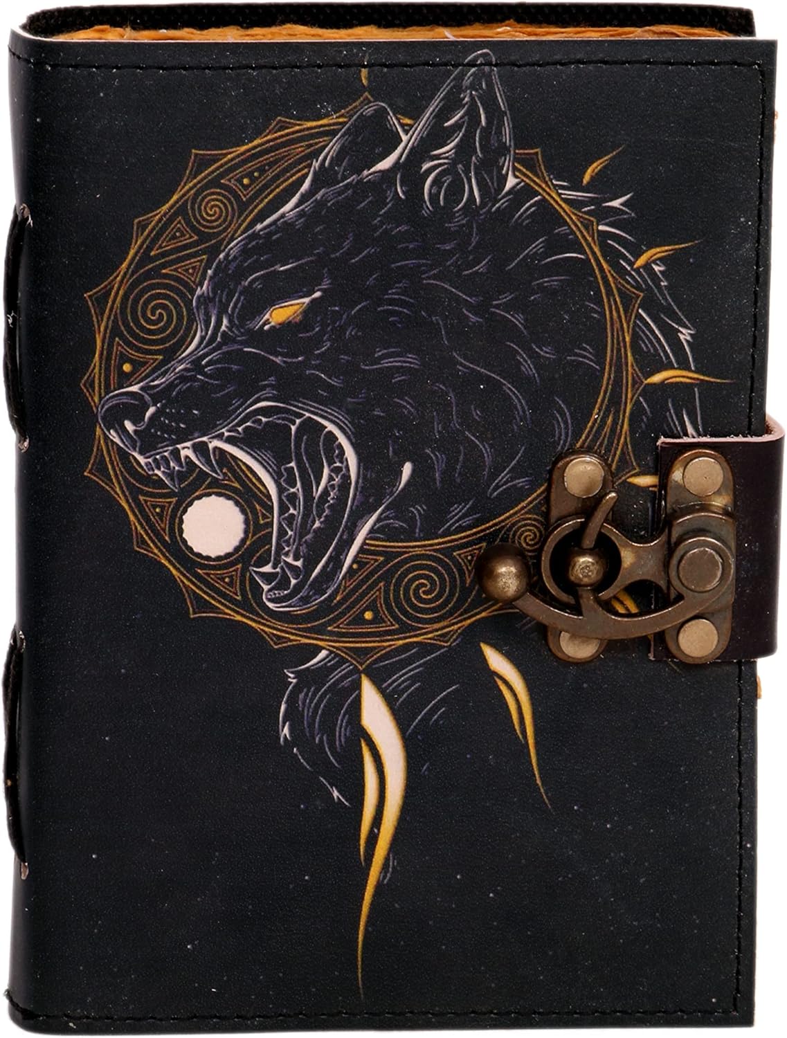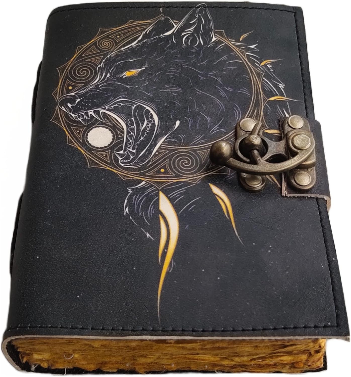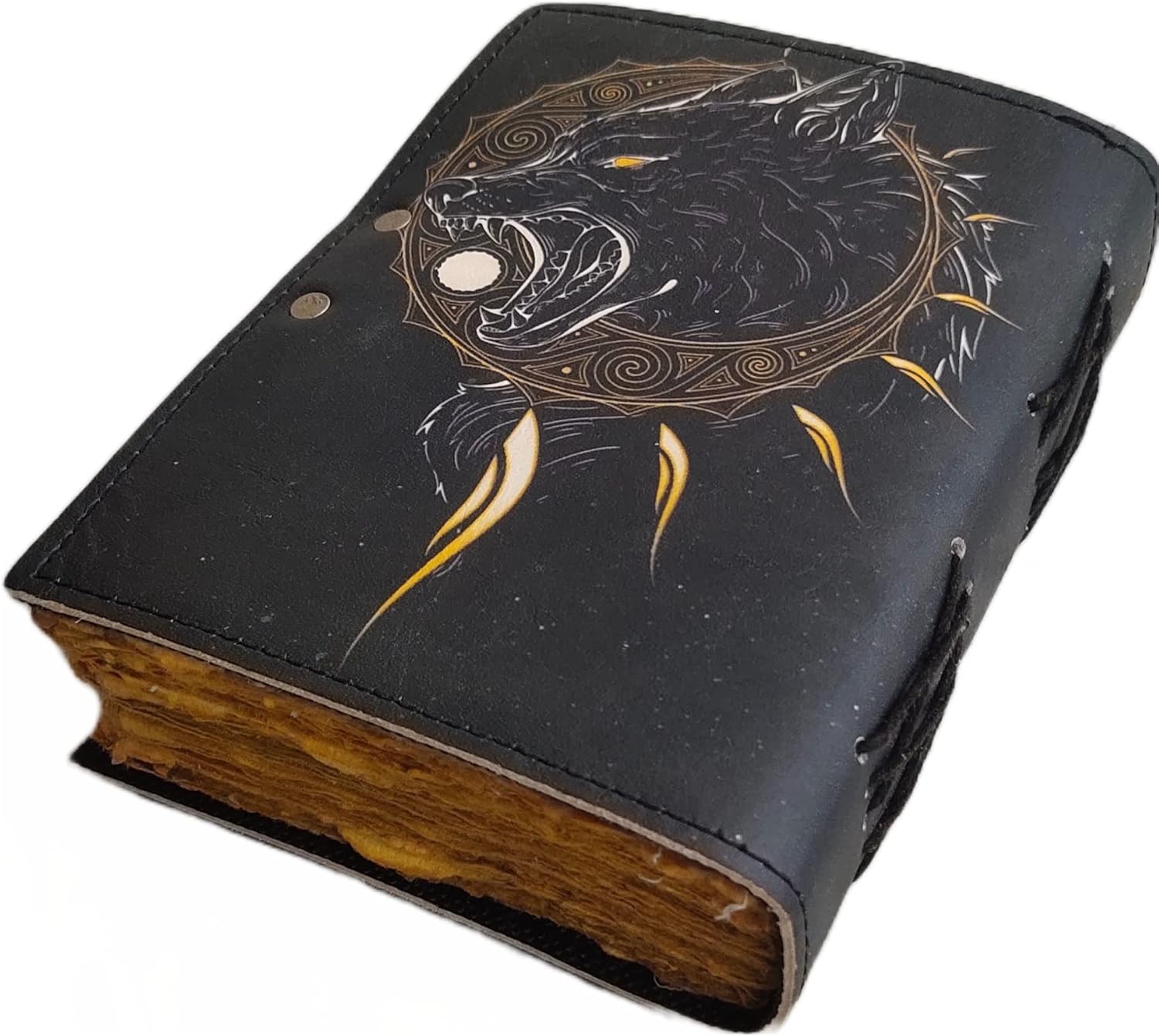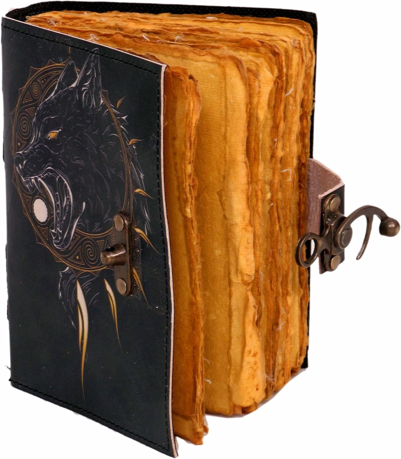 Black Wolf Leather Journal for men and women, 200 Pages of Antique Handmade Deckle Edge Vintage Paper, Leather Sketchbook, Drawing Journal, Printed Leather Journal (6 X 8) quantity