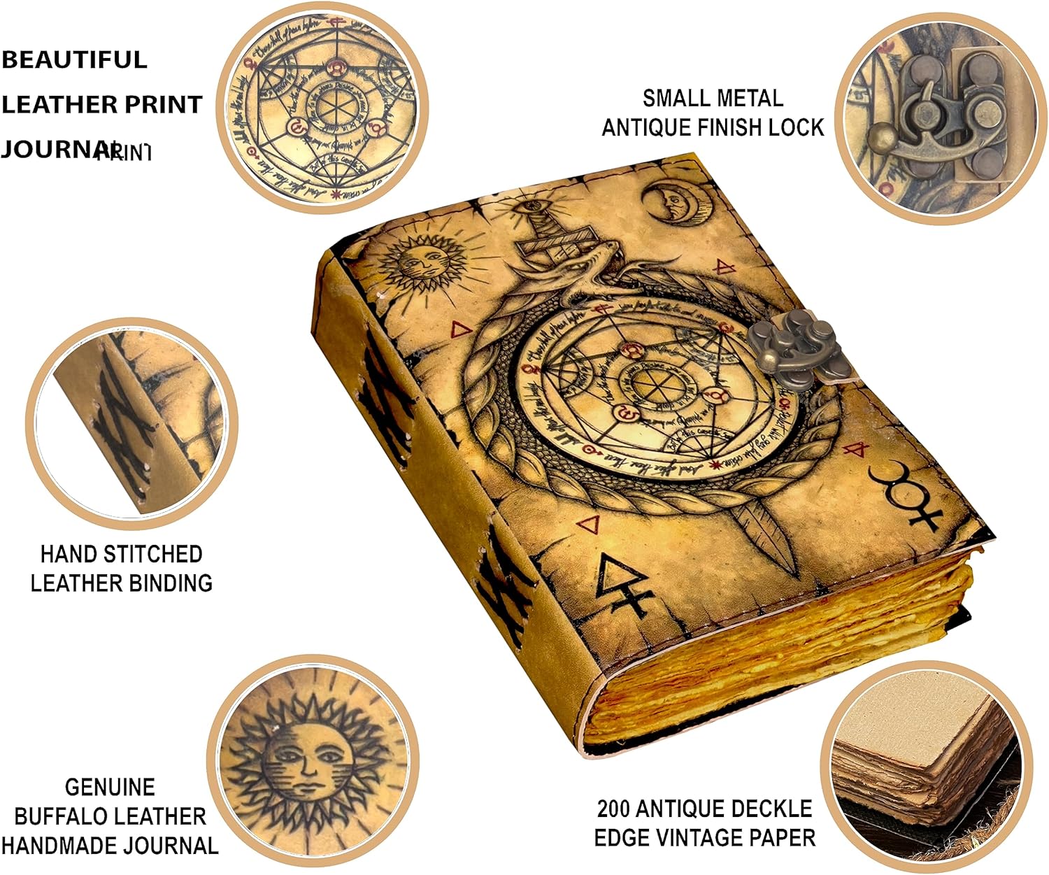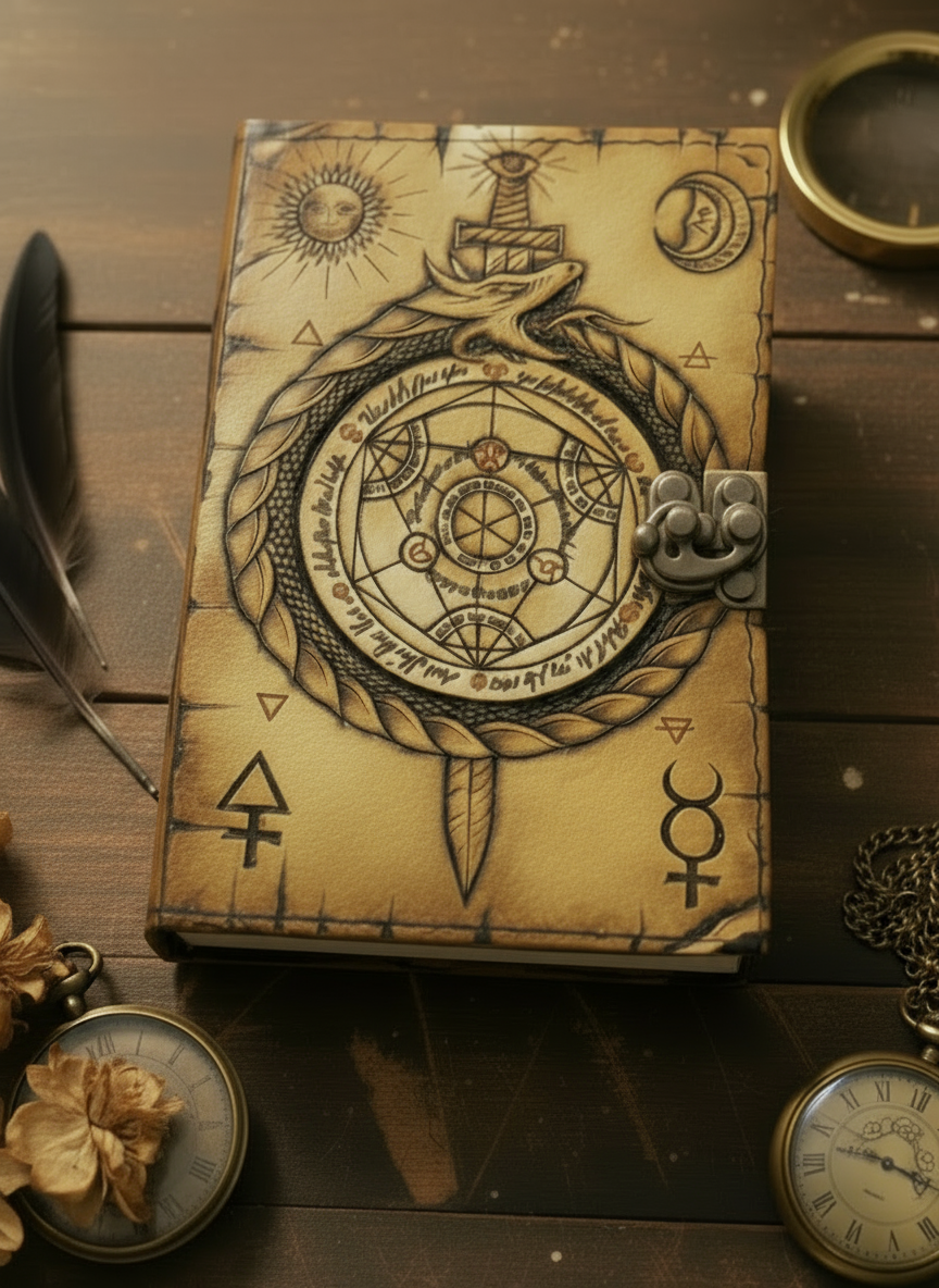 A handcrafted vintage spell book journal made with 200 pages of antique handmade cotton paper, giving it an old-world charm. Perfect for witchcraft, spell writing, journaling, or sketching, this notebook is both functional and mystical.