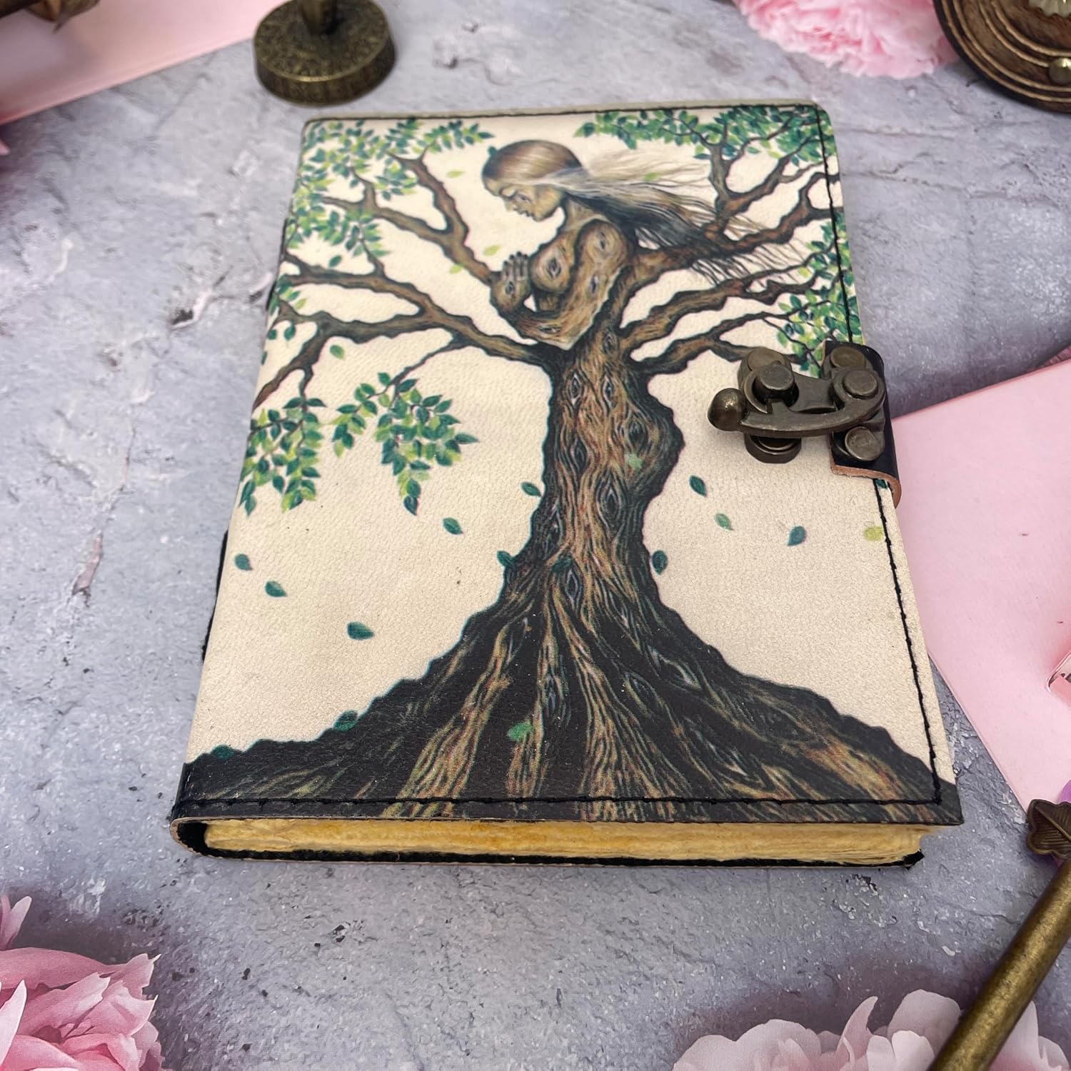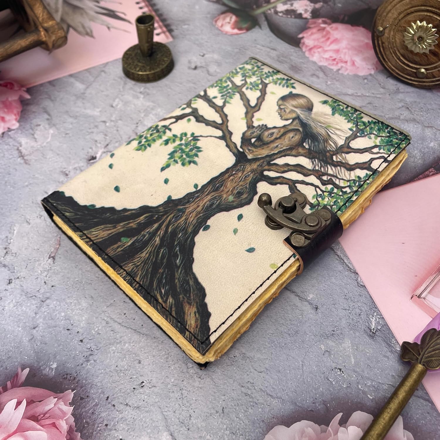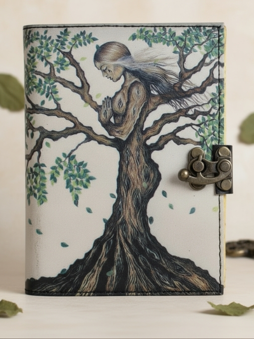 A beautifully handcrafted leather journal for women, made with genuine distressed leather and antique vintage paper. Each piece is unique in look and shade, perfect as a Book of Shadows, Spell Book, or Writing Notebook.