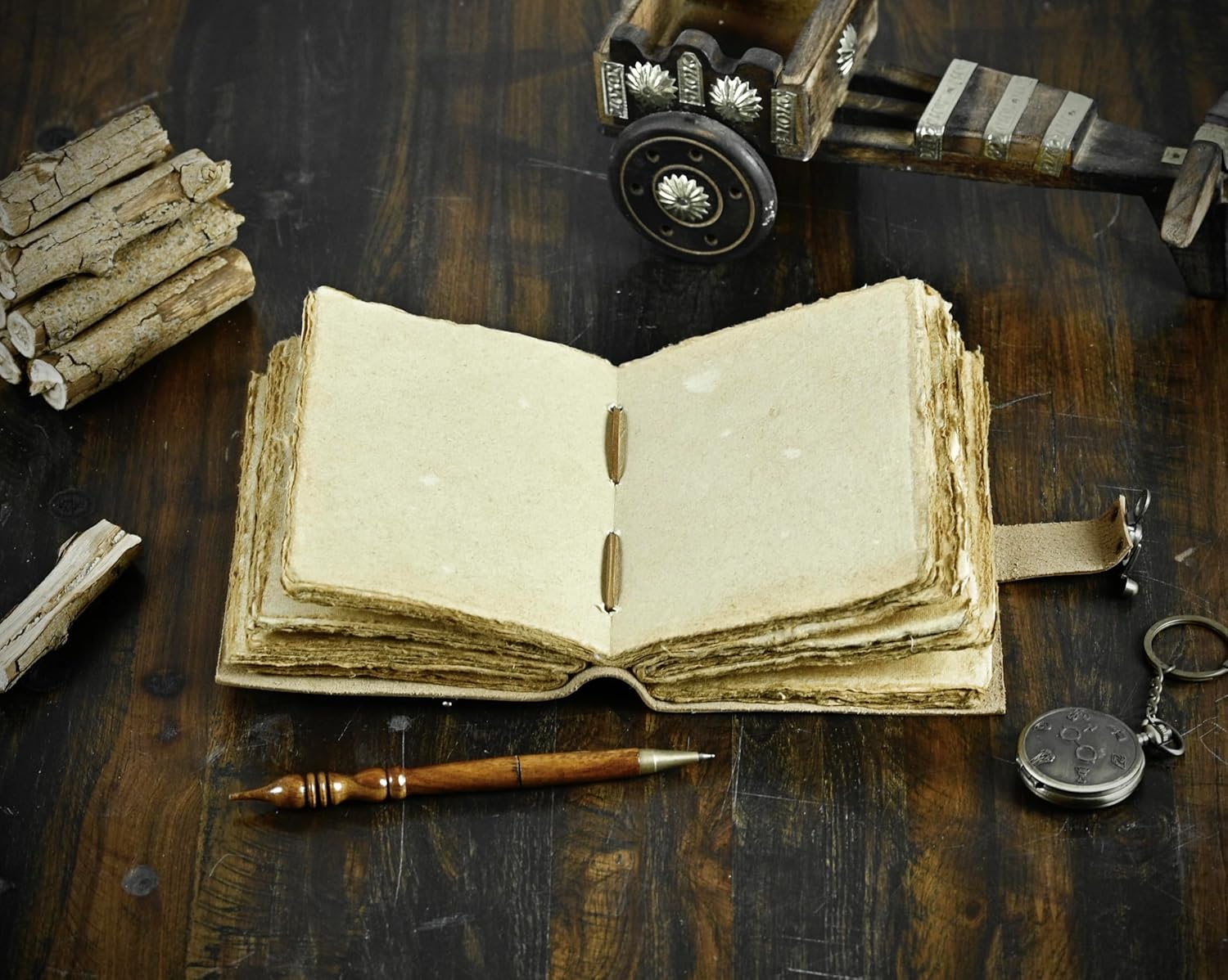 A beautifully crafted vintage leather-bound journal with 200 pages of antique handmade cotton paper, designed for writers, artists, and spiritual practitioners. With a unique brass key design, this journal brings together elegance, durability, and mystical charm.