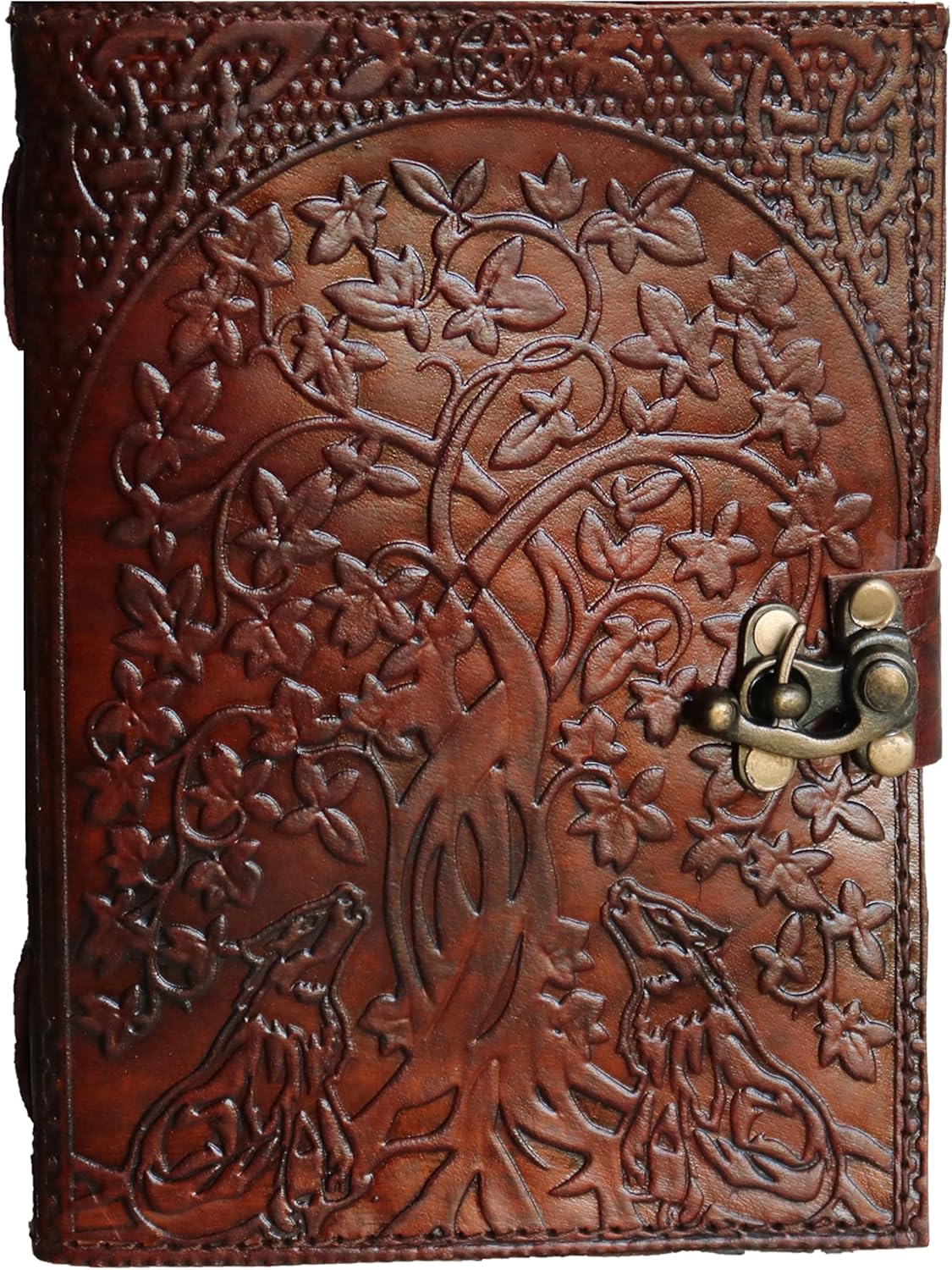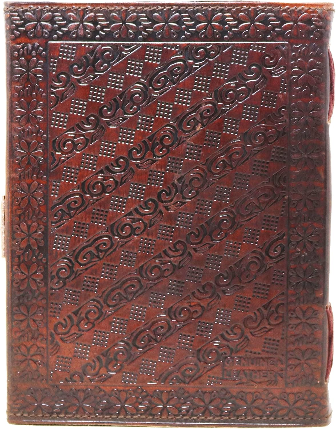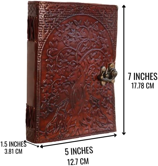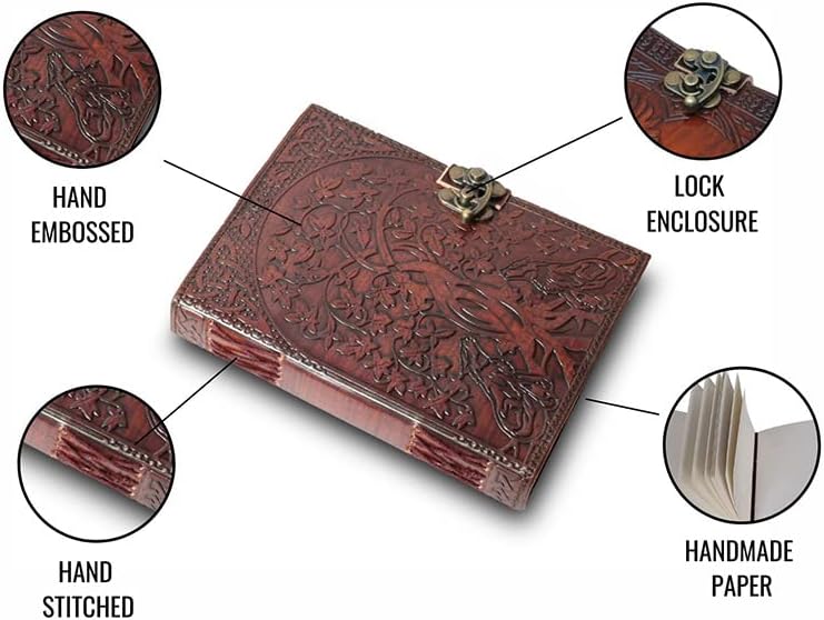 ✔ RUSTIC CHARM: Beautifully embossed leather cover with hand stitched coptic leather binding that secures the pages firmly. This old-fashioned character journal has a classic clasp closure that effectively keeps your journal closed.