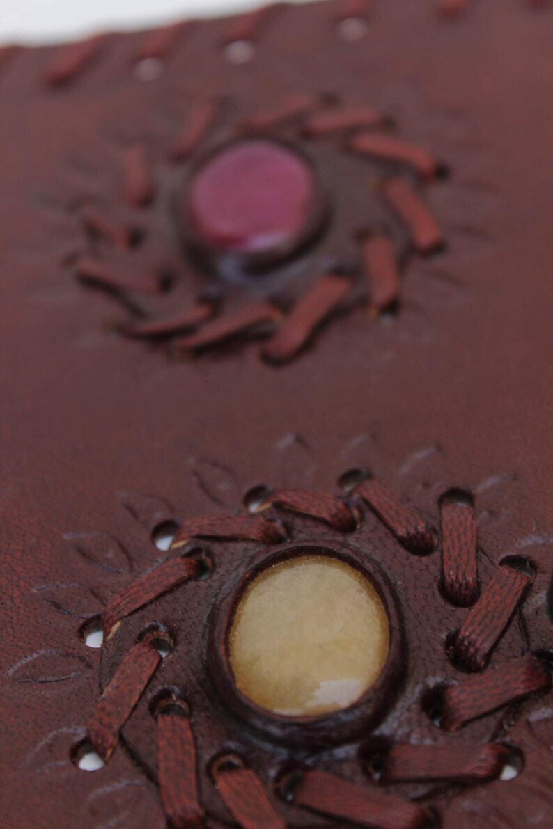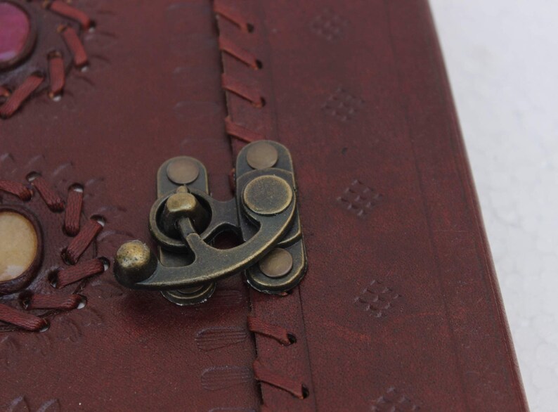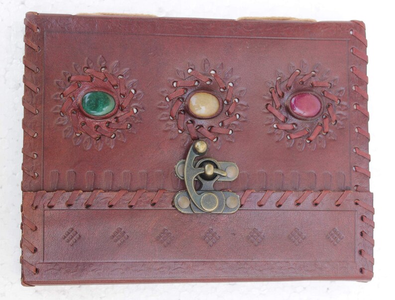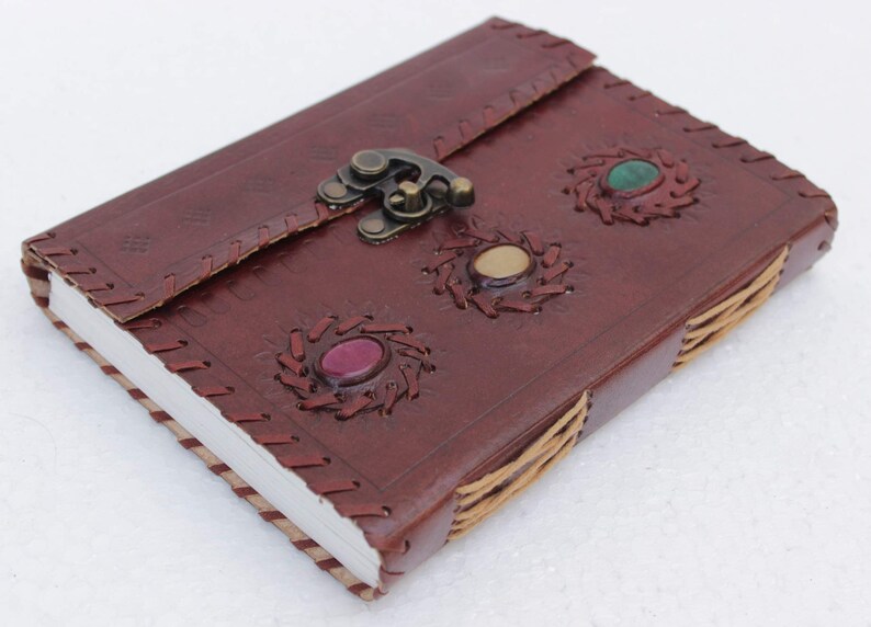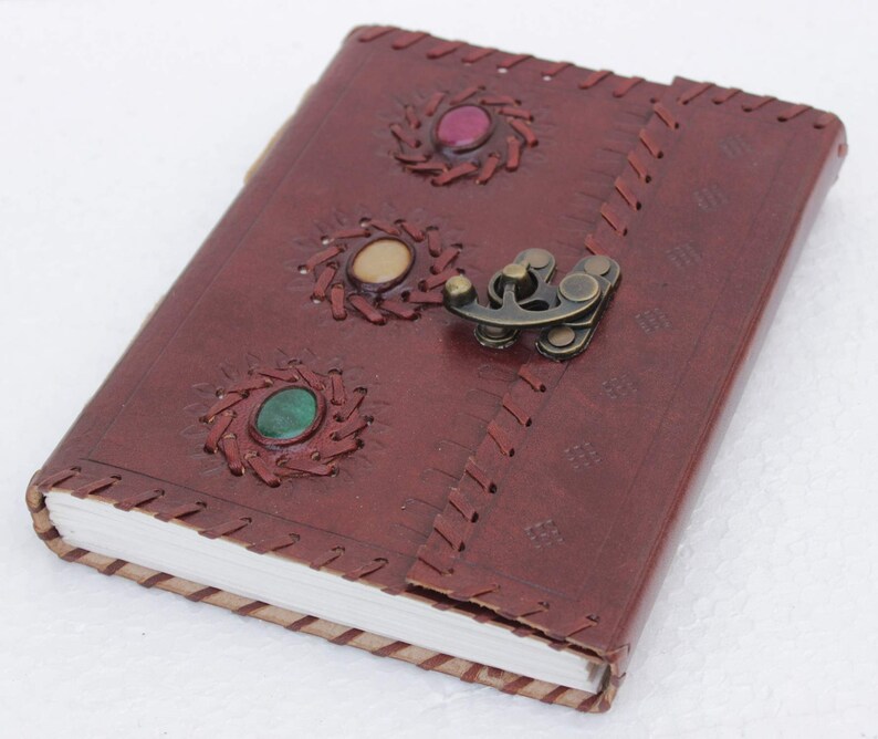 Handicrafts Provides wide variety at a good range of products.The Diary is the perfect companion for writers, thinkers, entrepreneurs who wants to put their thoughts on paper easily. The Diary notebook is a thing of beauty that will be proud to carry and show to friends. Use it as a personal journal, diary, planner or notebook. Buy Now, Don’t Wait For Last Moment! 100% Rich Quality Leather Material Perfect size For Handbag Pages: 200 pages of unlined handmade paper 3 lovely genuine stone with good luck leather journal,handmade leather dairy,leather notebook,leather blankbook,leather cover,leather album,leather ,dragon journal,leather album,leather office book,leather written book